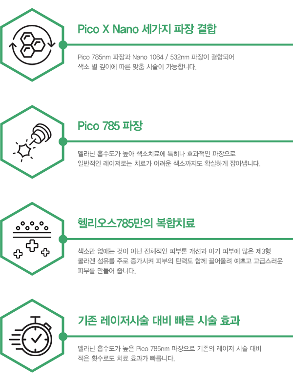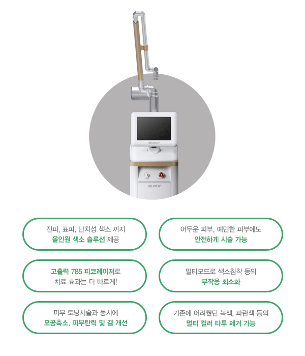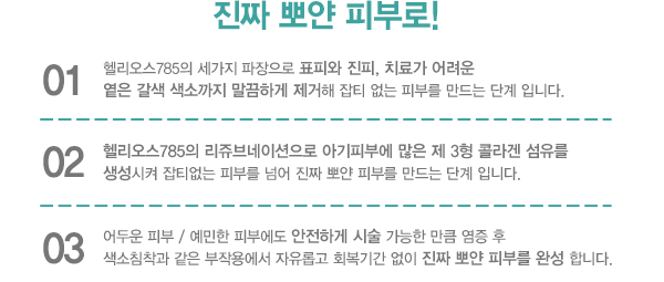 Ç︮¿À½º785´Â ¼¼°¡Áö ÆÄÀåÀÌ °áÇյǾî, Ç¥ÇÇ¿Í ÁøÇÇ »ö¼Ò´Â ¹°·Ð ¸á¶ó´Ñ Èí¼öµµ°¡ ³ôÀº 785nm ÆÄÀåÀ¸·Î Ä¡·á°¡ ¾î·Á¿î ¿¶Àº »ö¼Ò±îÁöµµ È®½ÇÇÏ°Ô Àâ¾Æ³» ÁøÂ¥ ±ú²ýÇÏ°í ¸¼Àº ÇǺθ¦ ¼±¹°ÇÕ´Ï´Ù.